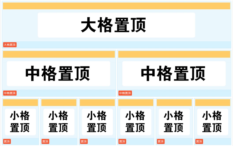 大格置頂在前,小格置頂在后。相同大小的置頂信息,先做的在前,后做的在后。