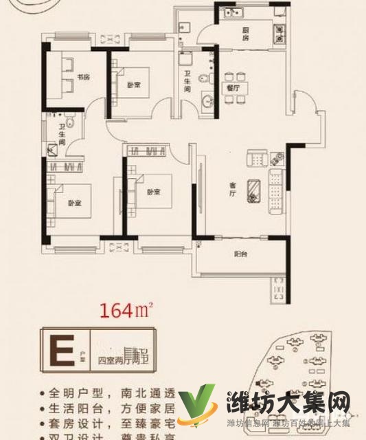 健康街永春路,歌爾、新一中,高新實驗,中央商務(wù)區(qū)學(xué)校 H戶型 4/2/2 樓層 客廳朝陽.