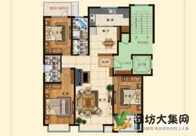 戶型:3室2廳1廚1衛1陽臺 ,格局方正,使用率超贊